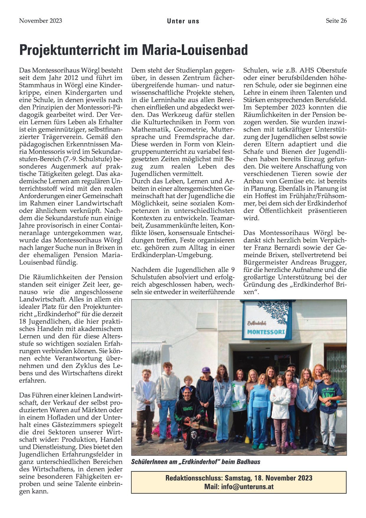 Das Sommersemester hat schon begonnen und startete für unsere 8. und 9. Klässler gleich mit der beliebten Praktikumswoche. Die Praktika fanden in einer Konditorei, im Requisiten-Team einer Theaterproduktion, einem Restaurant, beim Restaurator, im Montessori-Kinderhaus, bei einem Hundefrisör und noch anderen Firmen statt. Aber auch für die 6. Klässler startete das Semester gleich mit einer spannenden und eindrucksvollen Woche am Erdkinderhof. In zwei Wochen sind nun auch schon die nächsten Work & Study Präsentationen, weshalb auch die Brotgruppe fleißig beim Brotbacken ist und wir immer wieder kulinarisch mit Kostproben (zB mit Ciabatta) verwöhnt werden. Durch die Kommunikationsgruppe und den von ihr eingeladenen ExpertInnen konnten wir alle auch schon viel Spannendes und Neues über Indien, Portugal und Arabien erfahren. Februar 2025
