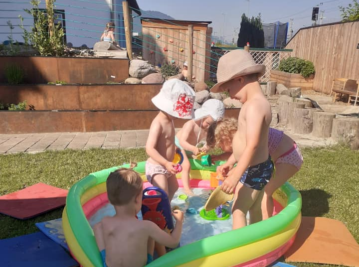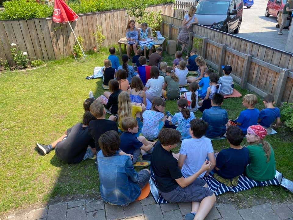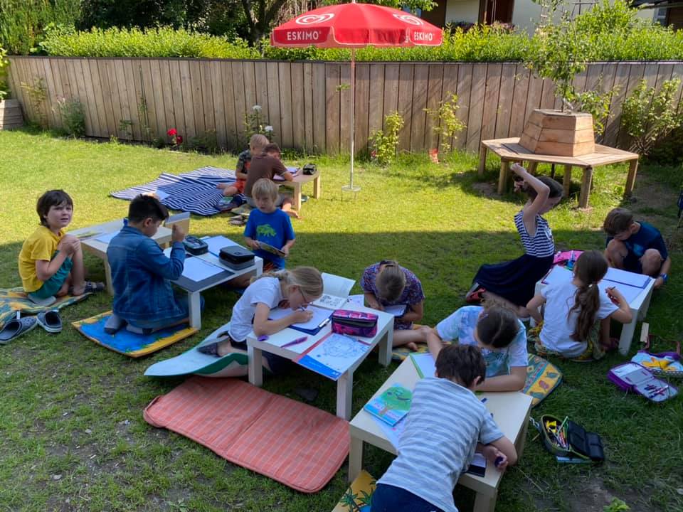 ist unser Garten gerne und gut frequentiert! Während die Jüngsten Spaß beim Plantschen und der anschließenden Jause haben, halten die Schulkinder der P1 ihren Lesekreis im Freien ab. Auch das freitägliche Community Meeting der Primarstufe wird kurzerhand nach draußen verlegt, wo auch der letzte Rest Schatten ausgenutzt wird...