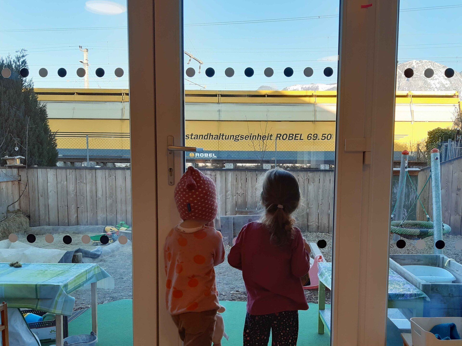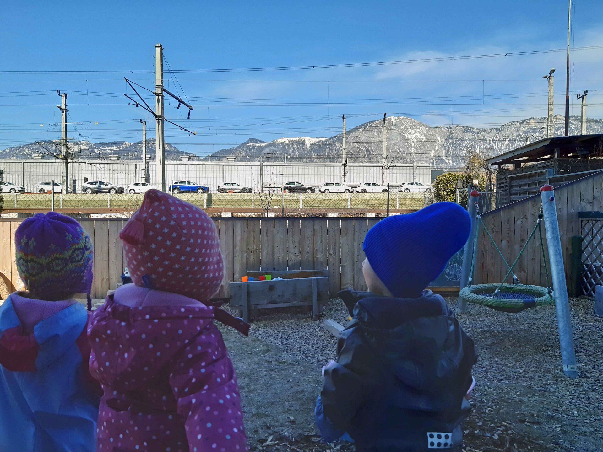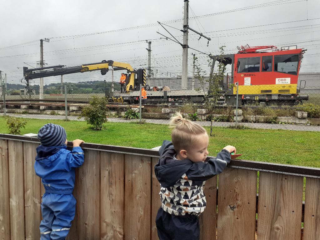 haben nicht nur direkten Zugang zu unserem Garten, sondern auch noch einen ganz besonderen Ausblick! Unsere Kleinsten LIEBEN es, mit sicherem Abstand den Zügen zuzusehen, die am Bahnhof Wörgl stehen bleiben oder vorbei fahren.